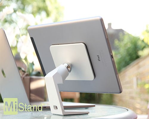 El MiStand fue el primer soporte de micro-succión que encontramos en Kickstarter (antes de Slope). Hay una gran diferencia entre Slope y MiStand: la flexibilidad. El diseño de Slope corrige la orientación del iPad. MiStand tiene una disposición de agarre de bola que permite girar el iPad Air a cualquier nivel. Esto lo hace perfecto tanto para leer (en vertical) como para ver películas (en horizontal) en el iPad sin tener que quitarlo/fijarlo al soporte (como ocurre con Slope).