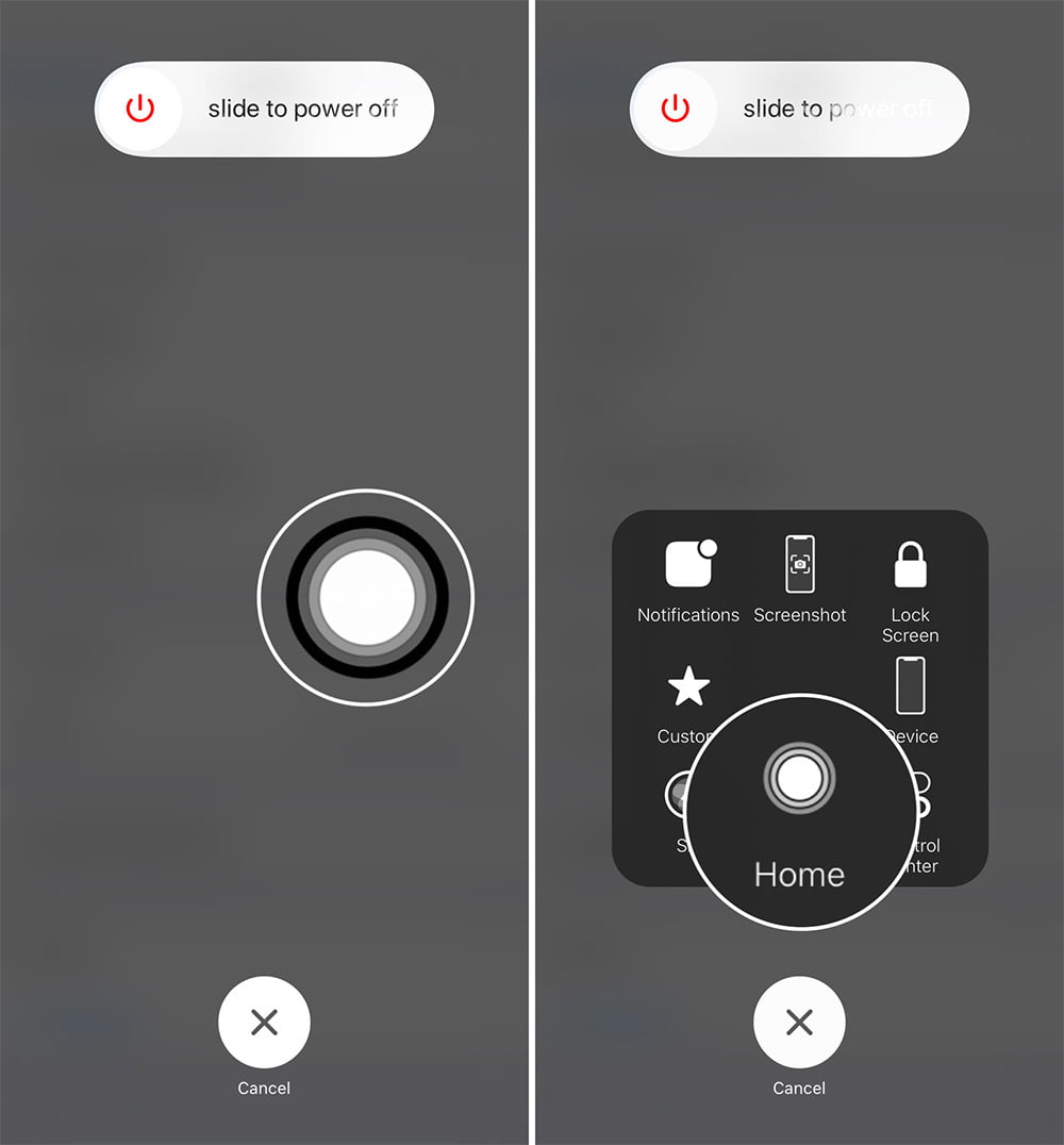 Paso 6. Toque el Botón AssistiveTouch. Por último, mantenga pulsado el botón AssistiveTouch. Inicio virtual en AssistiveTouch. Déjalo cuando la pantalla del iPhone parpadee y vuelve a la pantalla de bloqueo.
