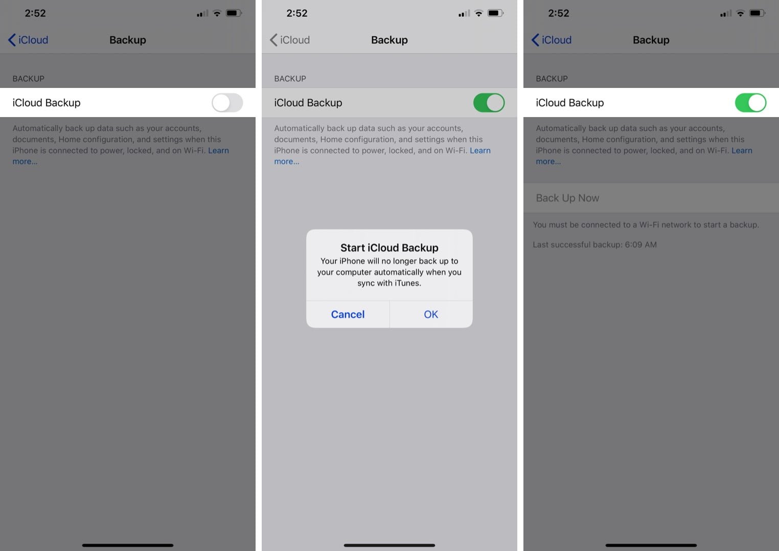 Paso 3. Activa el interruptor junto a Copia de seguridad de iCloud. Ahora aparecerá una ventana emergente que le pedirá que confirme. Pulse OK para confirmar.