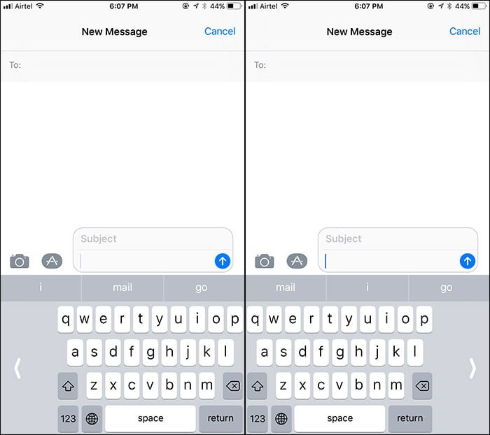Paso 1. En primer lugar, tienes que abrir cualquier aplicación y mostrar el teclado QuickType como haces normalmente. En esta prueba, abriré la aplicación Mensajes.