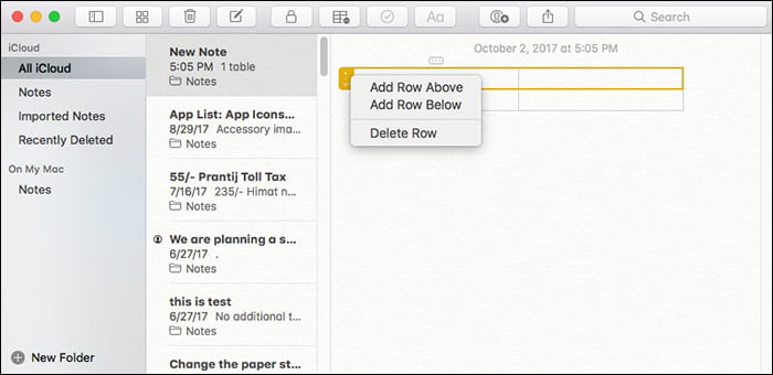Cómo añadir o eliminar filas y columnas en la app Notas en macOS High Sierra