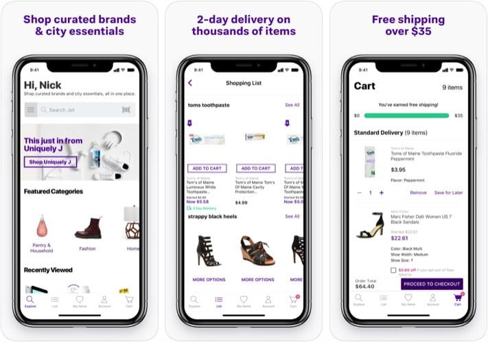 Jet ofrece envío gratuito en pedidos superiores a 35 dólares. Como también funciona con Apple Pay, añadir tus artículos favoritos a tu cesta debería ser un poco más fácil.