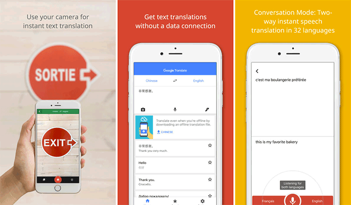 Google Translate ofrece traducción instantánea y gratuita entre 103 idiomas. La aplicación traduce palabras, frases y páginas web entre cualquier combinación de idiomas compatibles. También puedes traducir palabras o frases sin conexión a Internet hasta en 59 idiomas.