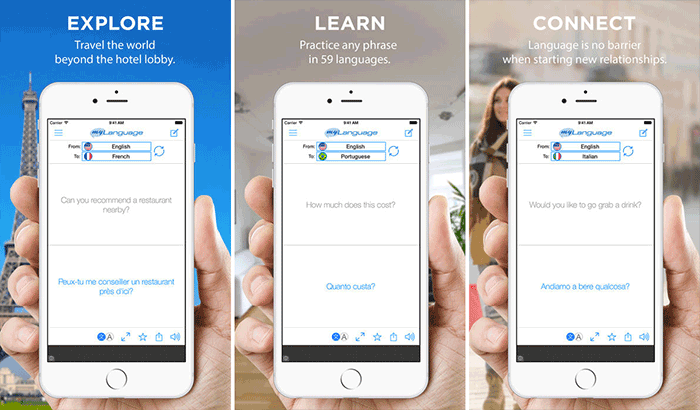 Con esta potente aplicación, puedes traducir textos en más de 60 idiomas. Utiliza las traducciones de la cámara para traducir rápidamente las palabras de cualquier foto. También incluye frases para traducciones verificadas y pronunciaciones inmensamente útiles.