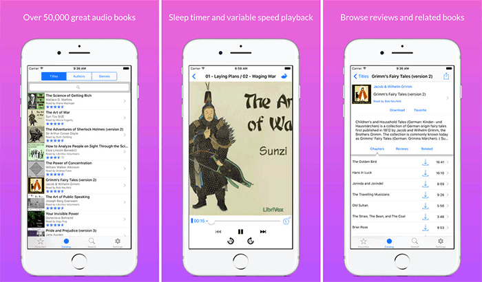 LibriVox está muy bien valorado. Con más de 50.000 audiolibros, de libros de todos los géneros y de los más vendidos, no tendrás que buscar más allá de esta aplicación de audiolibros.