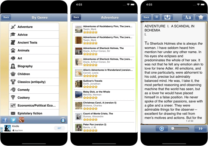 «Kobo Books» es una completa aplicación de audiolibros para iOS. Lo que requiere atención en esta aplicación es la gigantesca colección de más de 6 millones de títulos. Esto significa que todo lo que quieras leer puede estar a una rápida búsqueda.