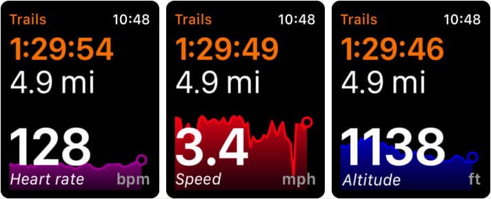 Trails es una aplicación de seguimiento de la actividad física al aire libre. Mediante gráficos en directo y mapas topográficos sin conexión, esta aplicación puede registrar cualquier actividad al aire libre. Trails muestra gráficos en tiempo real de cuatro estadísticas deseadas. Puedes elegir entre más de 20 estadísticas, incluyendo la velocidad y la frecuencia cardíaca en tu iPhone.