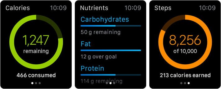 «MyFitnessPal» es un excelente rastreador de calorías y dietas para watchOS e iOS. Con esta aplicación, puedes controlar fácilmente lo que comes y evitar que los adictos se mantengan en forma y saludables.