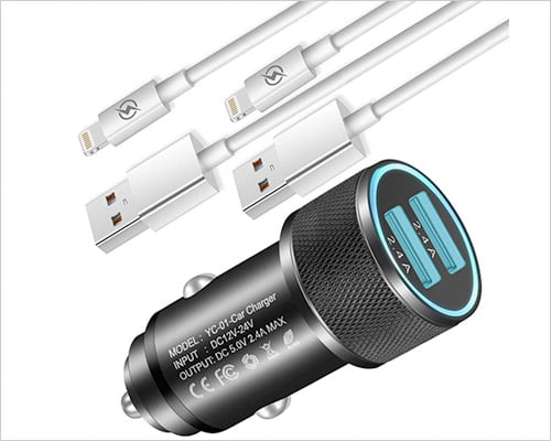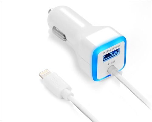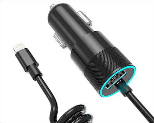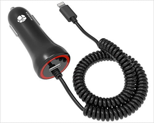 Hunda ha fabricado un cargador de coche con un cable flexible. Este cable enrollado mantiene su coche organizado sin colgar el cable. Además de un cable integrado para el iPhone, este cargador de coche ofrece un puerto USB adicional para cargar otro dispositivo iOS.