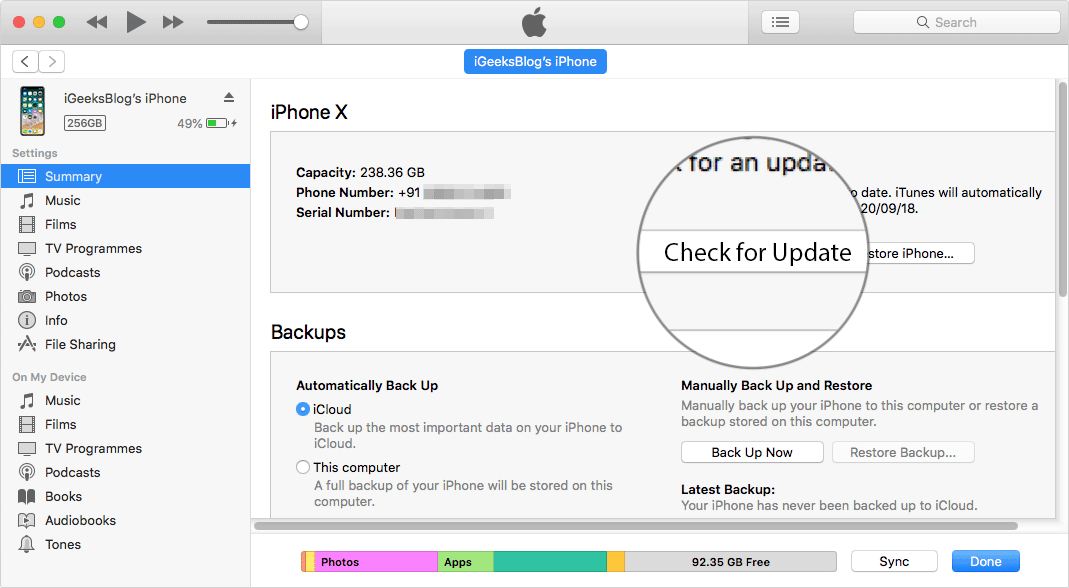 Si la instalación de iOS 12 falla repetidamente, sería mejor tomar la ayuda de iTunes para superar el obstáculo.